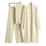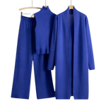 Objev nenucený styl s naším třídílným setem, který zahrnuje elegantní kalhoty, kardigan a rafinovaný top. I try to komplet spojuje pohodlí a eleganci v dokonalé harmonii – ideální pro všestranné outfity od rána do večera.